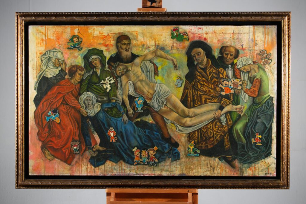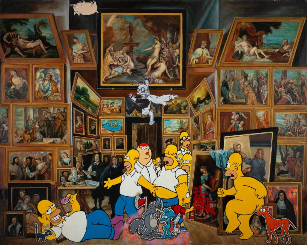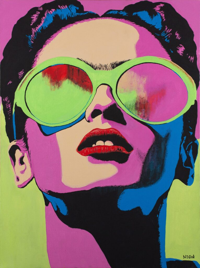 NEON CARON (Ciudad de México, 1984) su práctica se sitúa en el cruce entre el arte urbano, la cultura pop y las estéticas digitales contemporáneas. Desde 2011 ha desarrollado un lenguaje visual reconocible por su uso del dripping, colores intensos y la apropiaciones icónicas de la cultura visual masiva, integrando estos elementos en una pintura expandida a través de la tecnología. Autodidacta en su formación artística y con estudios en Medios Digitales en CENTRO, Caron ha llevado su obra más allá del lienzo, desarrollando una aplicación de Realidad Aumentada (RA) que permite al espectador activar capas ocultas dentro de algunas de sus piezas. Esta herramienta convierte a la obra en portales interactivos, donde lo pictórico se transforma en experiencia transmedial. Disponible en App Store y Google Play, la aplicación forma parte integral de su propuesta conceptual.